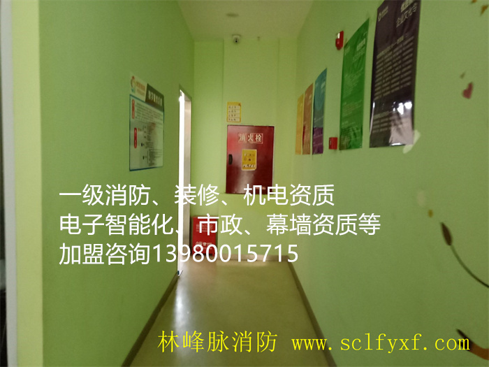 林峰脉俞建安装工程有限公司,公司资质齐全,甲级资质两项:消防工程甲级,装饰装修工程甲级;设计资质:消防设施工程专项乙级,建筑装饰工程专项乙级;二级资质七项:防水防腐保温工程专业承包乙级,建筑机电安装智能化城照工程专业承包乙级;环保工程转业承包乙级,古建筑工程专业承包乙级,输变电工程专业承包乙级,钢结构工程专业承包乙级,建筑工程总承包乙级、电力设施承装(承修、承试)资质。城市道路照明,建筑施工劳务,消防维保。电力工程用承装修饰资质,机电资质,输变电资质,我们面向全国开消防加盟分公司,欢迎大家咨询13980015715!
