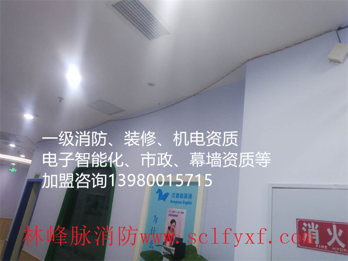 林峰脉俞建安装工程有限公司是专业的消防、装修、机电资质、电力设施承装(承修、承试)资质,电力工程用承装修饰资质,机电资质,输变电资质加盟公司,资质齐全,消防设计,消防施工,消防报建验收的经验丰富,为许多各行各业的客户带去优质专业的服务,欢迎有识之士一起加盟合作共赢13980015715。